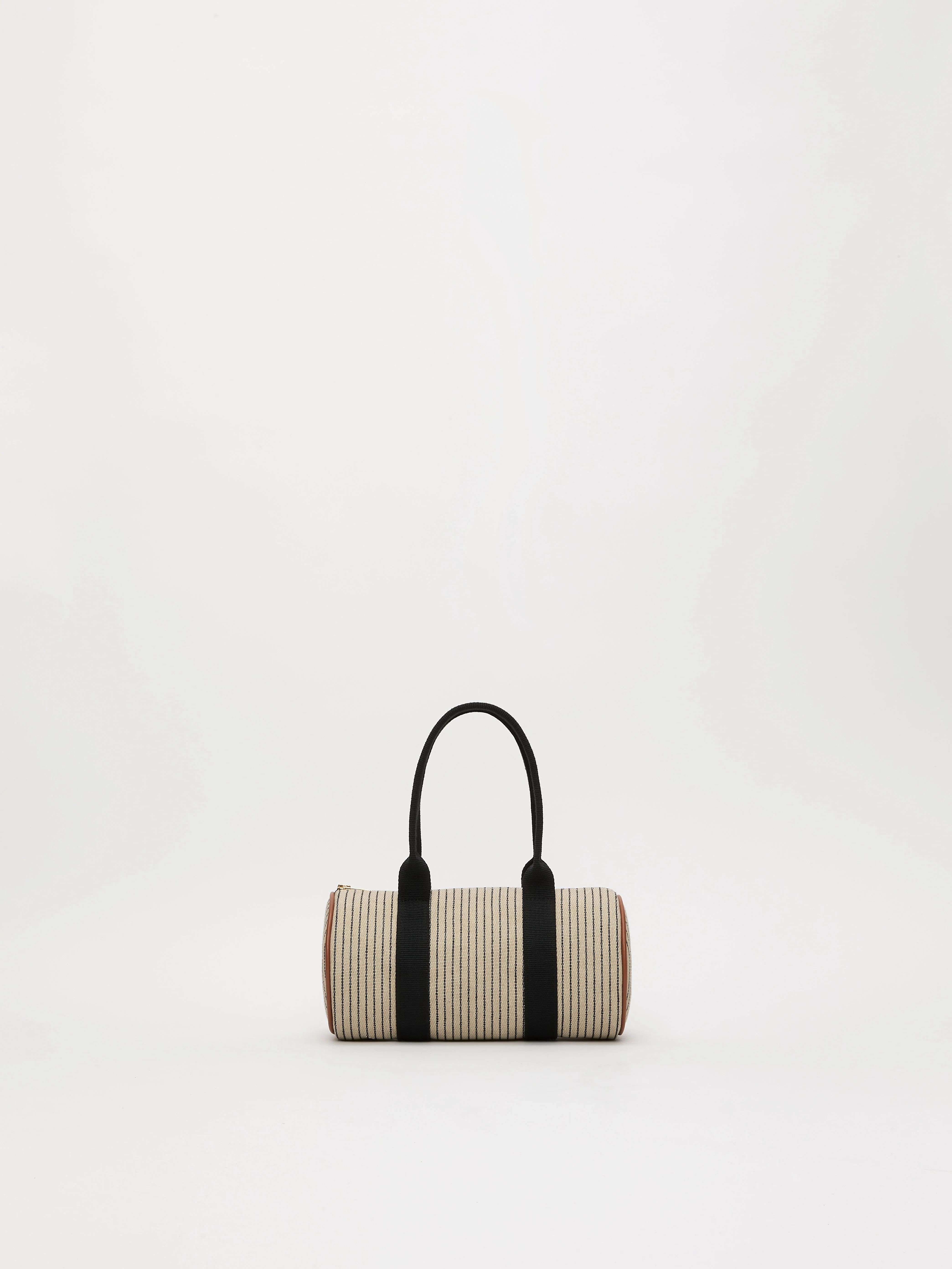 The Duffle S bag, crafted from durable cotton, features a anchor chain pattern and elevated by a black cotton strap and camel leather accents. This bag features a classic sporty shape with a touch of elegance, making it ideal for travel and short stays.