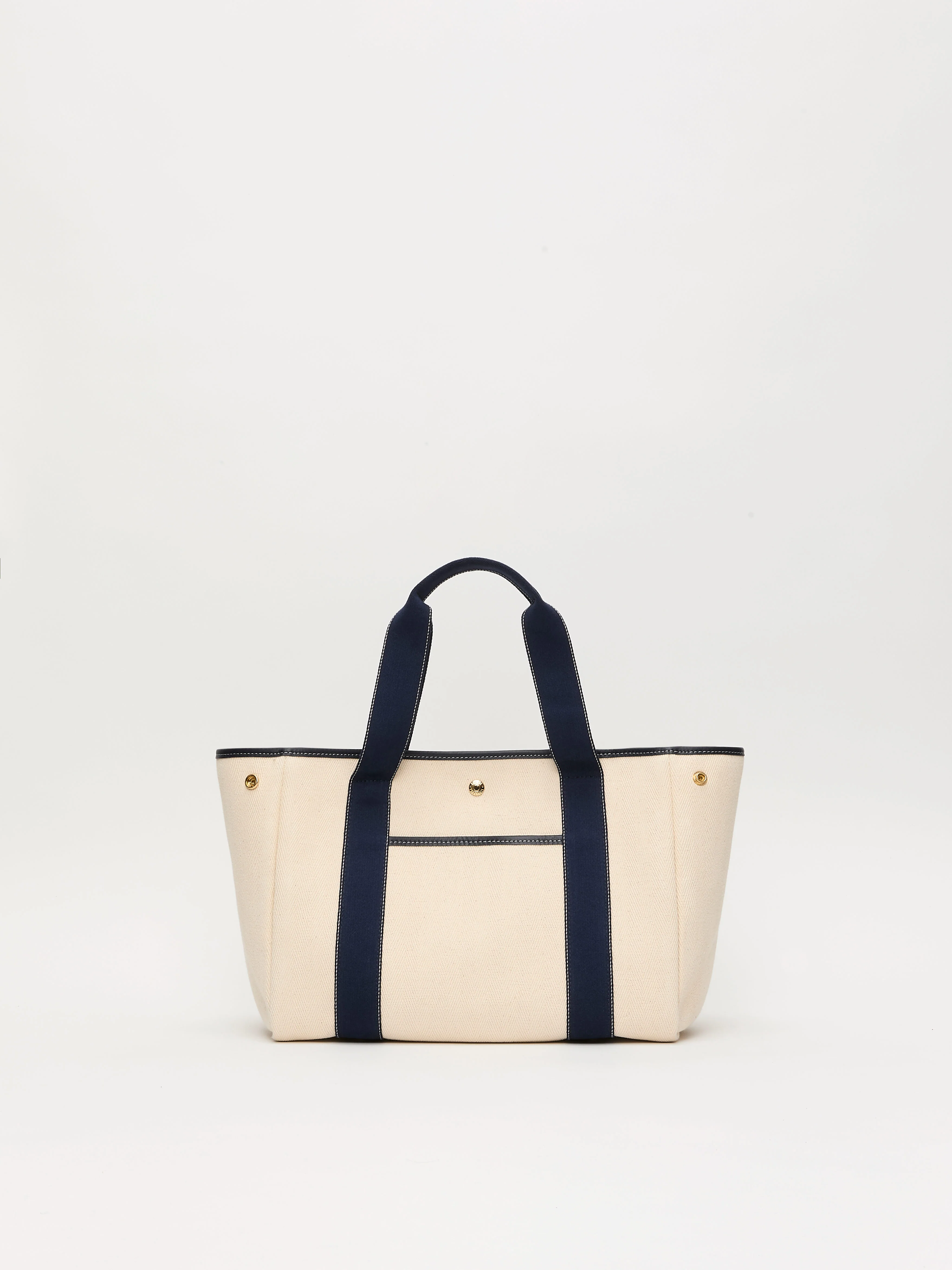 The Traversée M Pocket Bag, crafted from Verneuil canvas, features white Verneuil canvas with navy leather trimmings. Its compact yet spacious form makes it perfect everyday essentials. This bag can hold a 13-inch laptop. Side snaps allow the shape and volume of the bag to be adjusted.